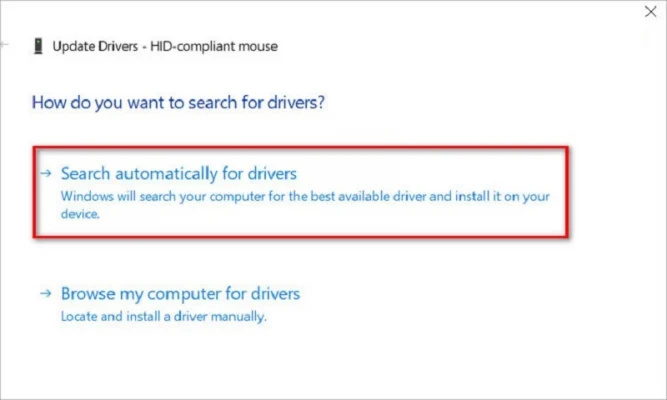 Ngay sau đó, hệ thống sẽ tự tìm kiếm và giúp bạn thực hiện cập nhật driver chuột cảm ứng nhanh chóng.