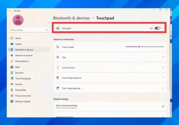 - Điều hướng đếnBluetooth & devices > Touch