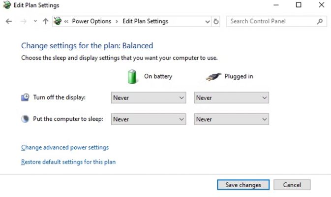 Tuy nhiên trước hết, hãy kiểm tra trong phần cài đặt của Windows trước bằng cách truy cập Settings > System > Power & sleep và chọn Additional power settings ở bên phải. Nếu như bạn không nhìn thấy tùy chọn này hãy kéo hoặc làm to cửa sổ hết cỡ. Sau đó chọn Change plan settings và chọn Restore default settings for this plan để khôi phục lại các cài đặt năng lượng laptop. Lúc này hãy chờ một lúc sau xem laptop của bạn đã sạc vào pin chưa.
