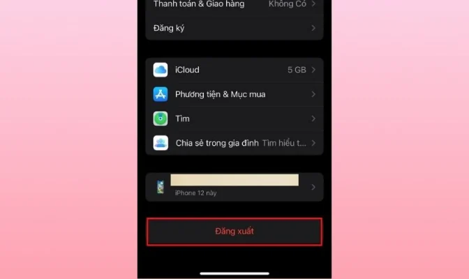 Bước 2:Lướt màn hình xuống mục cuối cùng, sau đó chọnĐăng xuấtvà đợi trong 1-2 phút để máy hoàn toàn đăng xuất tài khoản khỏi thiết bị.