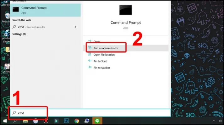 Bước 5:Khi thanh tìm kiếm hiện ra, bạn chỉ cần gõCMD. Sau đó, chọn vào mụcRun as Administratorở phần khung bên phải.