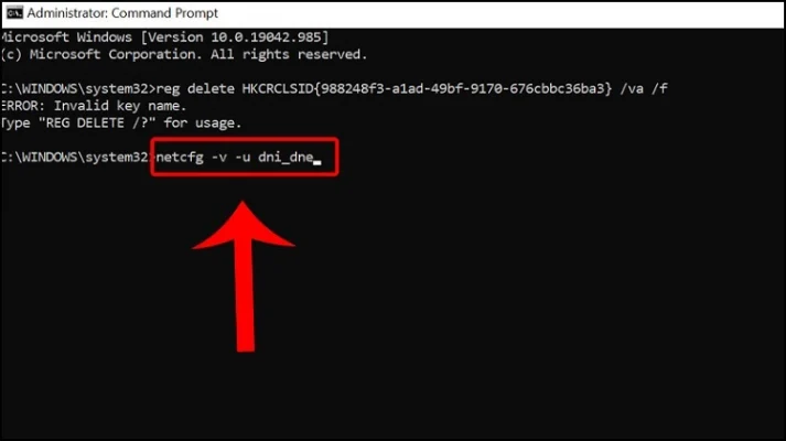 Bước 7:Bạn tiếp tục nhập lệnh“netcfg -v -u dni_dne”vào và nhấn phímEnter.