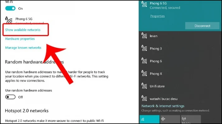 Cuối cùng, bạn chọn vào mụcShow available networksđể kiểm tra lại Wifi.
