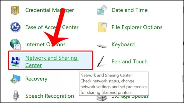 Bước 2:Sau đó, chọn vào mụcNetwork and Sharing Center.