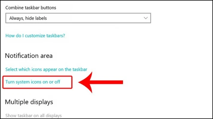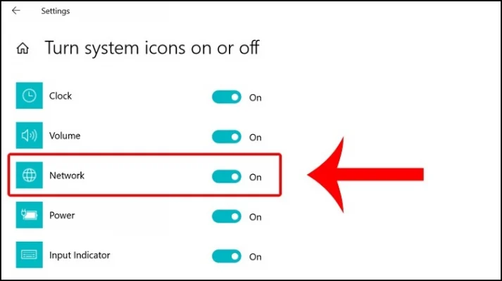 Bước 3:Tại cửa sổ mới, hãy chọnTurn system icons on or offđể kiểm tra xem Wifi có bị tắt không.
