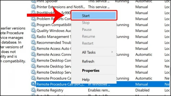 Bước 3:Hãy tìm kiếm các dịch vụ bên dưới và chọn vào từng dịch vụ. Nhấn nútStartđể tất cả được chạy: