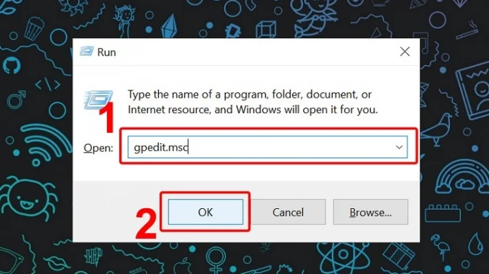 Bước 2:Tại khungOpen, bạn nhập lệnhgpedit.mscvào rồi nhấn nútOk.