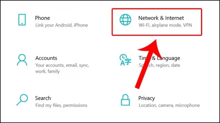 Bước 2:Tiếp theo, chọn vào mụcNetwork & Internet.