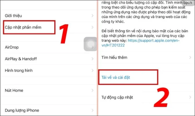 Bước 2:Lúc này, bạn chọnCập nhật phần mềmvà ấn vàoTải về và cài đặt.