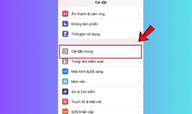 Bước 1:Truy cập vào ứng dụngCài đặttrên màn hình chính của iPhone. Trong menuCài đặt, kéo xuống và chọnCài đặt chung.