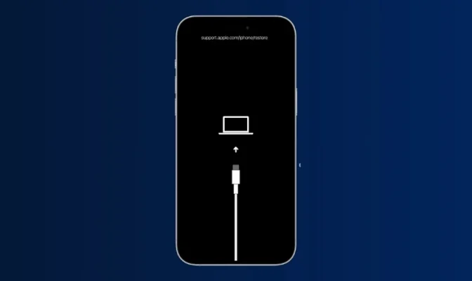 Bước 5:Hãy kết nối iPhone với máy tính của bạn bằng dây cáp. Ngay sau khi kết nối, hãy nhấn và giữ nút nguồn cho đến khi màn hình iPhone hiển thị biểu tượngRecovery Mode.