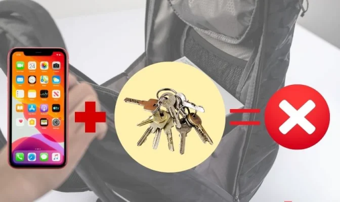 Các vật như chìa khóa, ổ khóa, dao rọc giấy khi đặt chung với điện thoại sẽ làm tăng nguy cơ xước màn hình. Và chỉ một bất cẩn nhỏ khi ngồi lên túi xách chứa những vật này, chúng có thể tác động lực lên nhau. Lúc này không chỉ là xước màn hình, mà iPhone có thể bị nứt mặt kính.