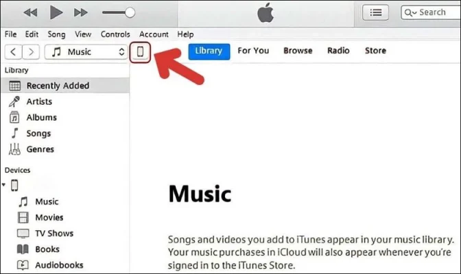 Bước 2:Sau khi kết nối thành công, bạn mởiTunesvà chọn vào biểu tượngđiện thoại.