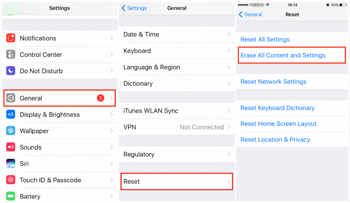 Nếu các phương pháp trước không hiệu quả và Bluetooth vẫn không hoạt động trên iphone 11 Pro Max, thì có thể xem xét khôi phục cài đặt gốc như là sự lựa chọn cuối cùng. Thao tác này sẽ xóa mọi thứ khỏi iPhone của bạn bao gồm các ứng dụng và tệp đã tải xuống,danh bạ, cài đặt tùy chỉnh và các dữ liệu khác. Để khôi phục tất cả các tệp quan trọng, hãy nhớ sao lưu chúng trước khi bạn bắt đầu xóa thiết bị của mình. Sau khi bạn đã sao lưu, hãy tiếp tục với các bước sau để khôi phục cài đặt gốc cho iphone 11 Pro Max: