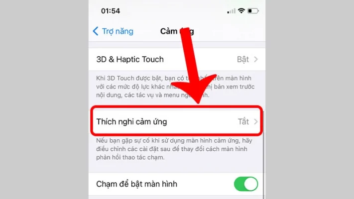 Bước 4: Bật tính năng Thích nghi cảm ứng bằng cách kéo thanh trượt sang phải, cho đến khi nút gạt chuyển sang màu xanh.