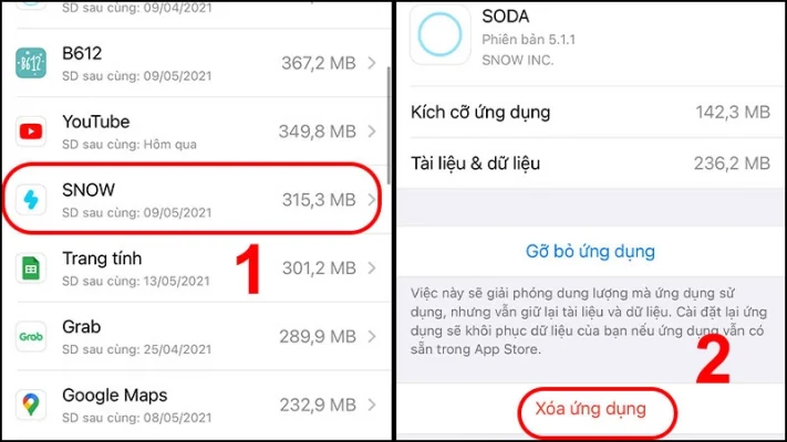 Bước 3: Chọn ứng dụng mà bạn muốn xóa, sau đó nhấn vào tùy chọn Xóa ứng dụng.