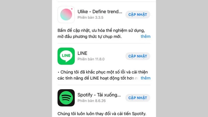 - Cập nhật tất cả các ứng dụng lên phiên bản mới nhất bằng cách nhấn vào nút Cập nhật bên cạnh mỗi ứng dụng hoặc nhấn nút Cập nhật tất cả để cập nhật cùng lúc.