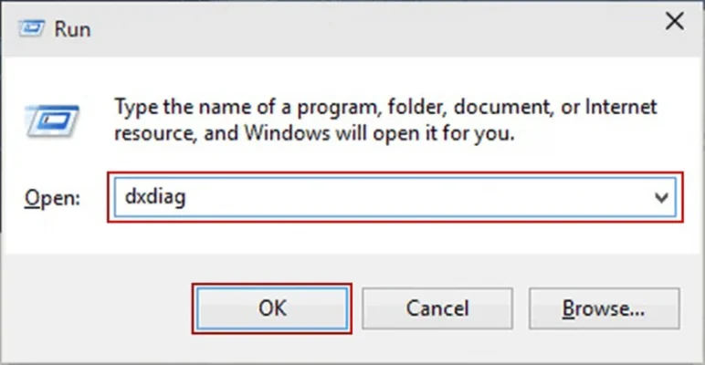 - Bước 1:Các bạn mở hộp thoại Run bằng cách nhấn tổ hợp phím Windows + R, sau đó nhập lệnh “dxdiag” rồi nhấn OK.