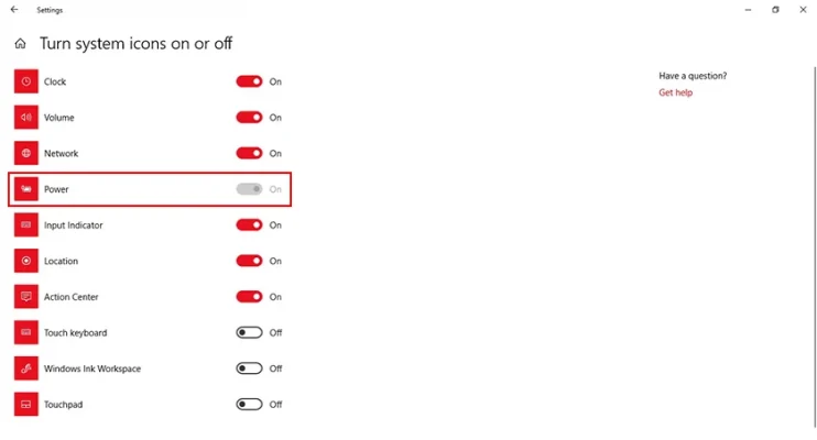 - Bước 4:Sau đó, tại mụcPower, gạt nútOffthànhOnđể kích hoạt biểu tượng Pin