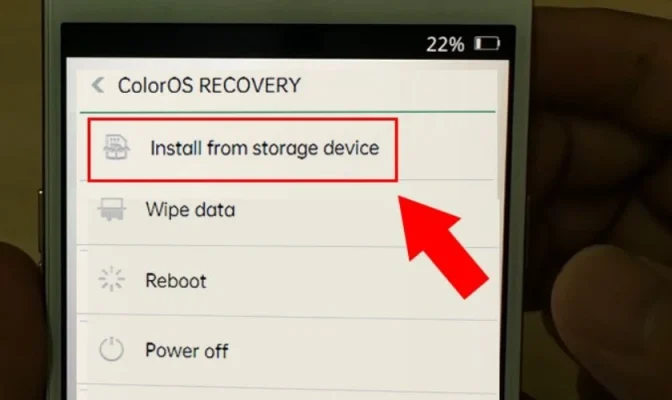 Sau đây là hướng dẫn chi tiết cách sử dụng “Install from storage device” trong ColorOS Recovery để cài lại firmware khi điện thoại OPPO bị lỗi: