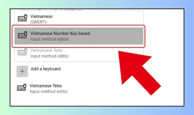 Bước 7:Trong danh sách xuất hiện, chọnVietnamese Number Key-basedđể dùng kiểu gõ VNI.