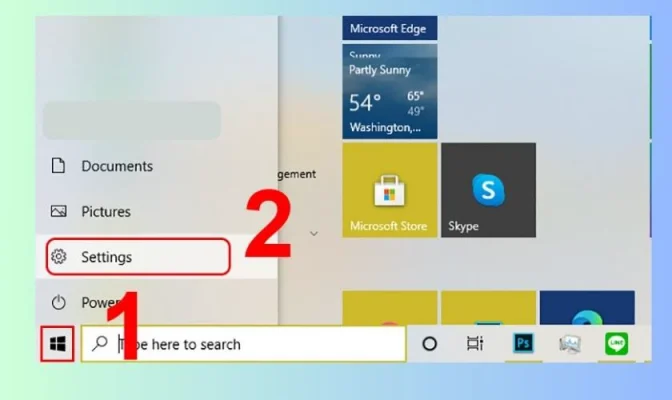 Bước 1:Nhấn vào biểu tượng Windows, sau đó chọn mụcCài đặt (Setting).