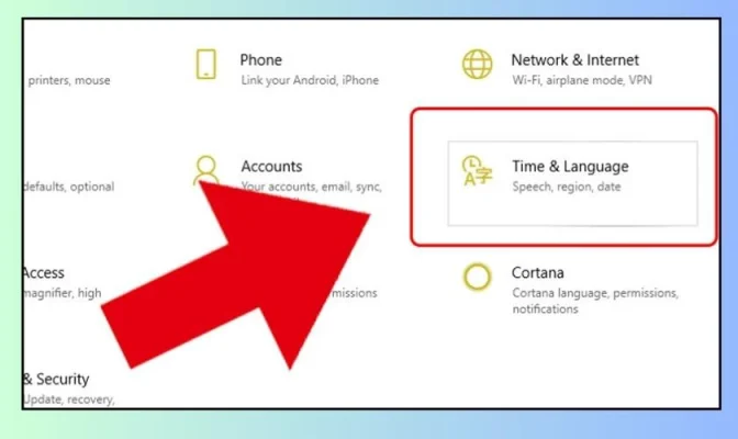 Bước 2:Trong cửa sổ Cài đặt, bạn chọn phầnThời gian & Ngôn ngữ (Time & Language).