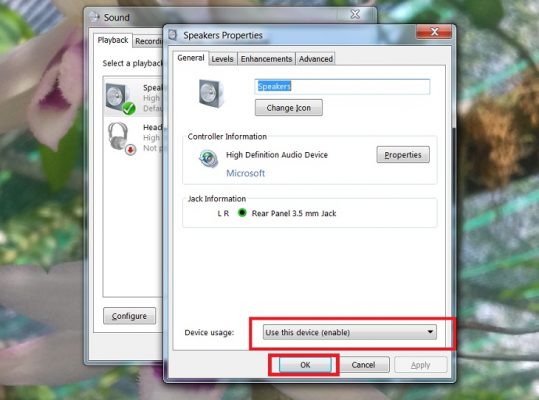 Bước 4: Ở cuối cửa sổ chọnUse this Device (enable)rồi nhấnOK.