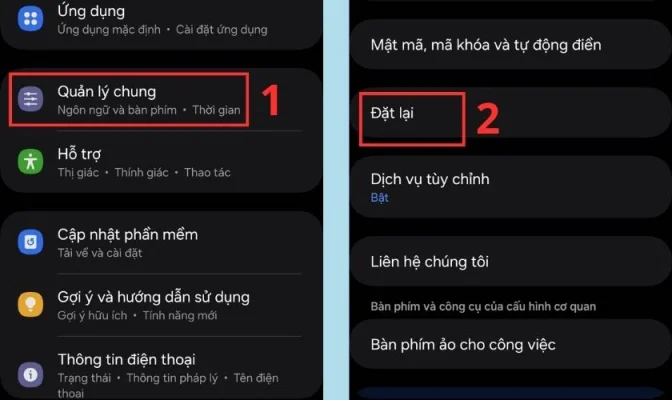 Bước 1:Bạn vàoCài đặtrồi chọn vàoQuản lý chung. Tiếp đến bạn chọnĐặt lại.