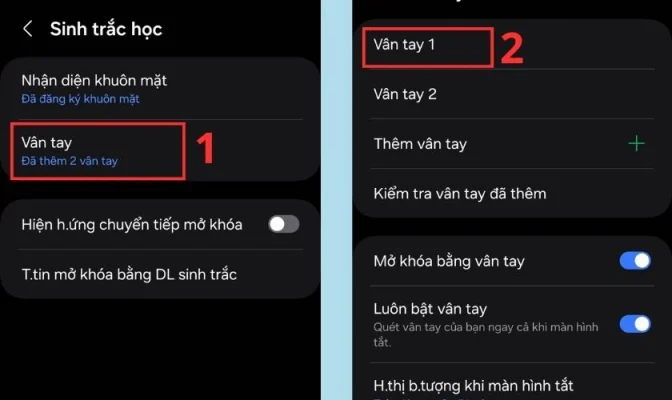 Xóa và thêm lại dấu vân tay mới